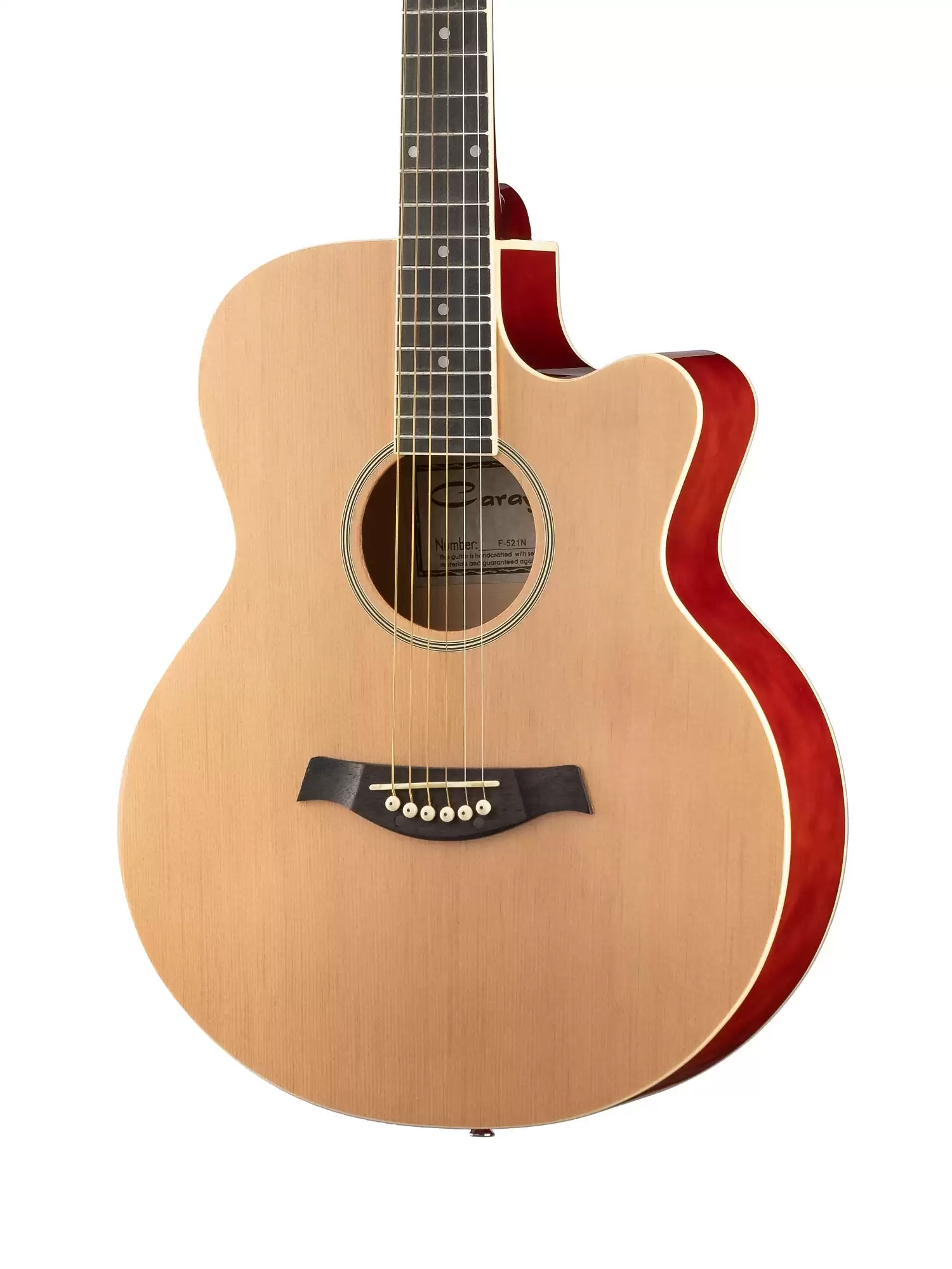 F521-N Акустическая гитара, с вырезом, цвет натуральный, Caraya.